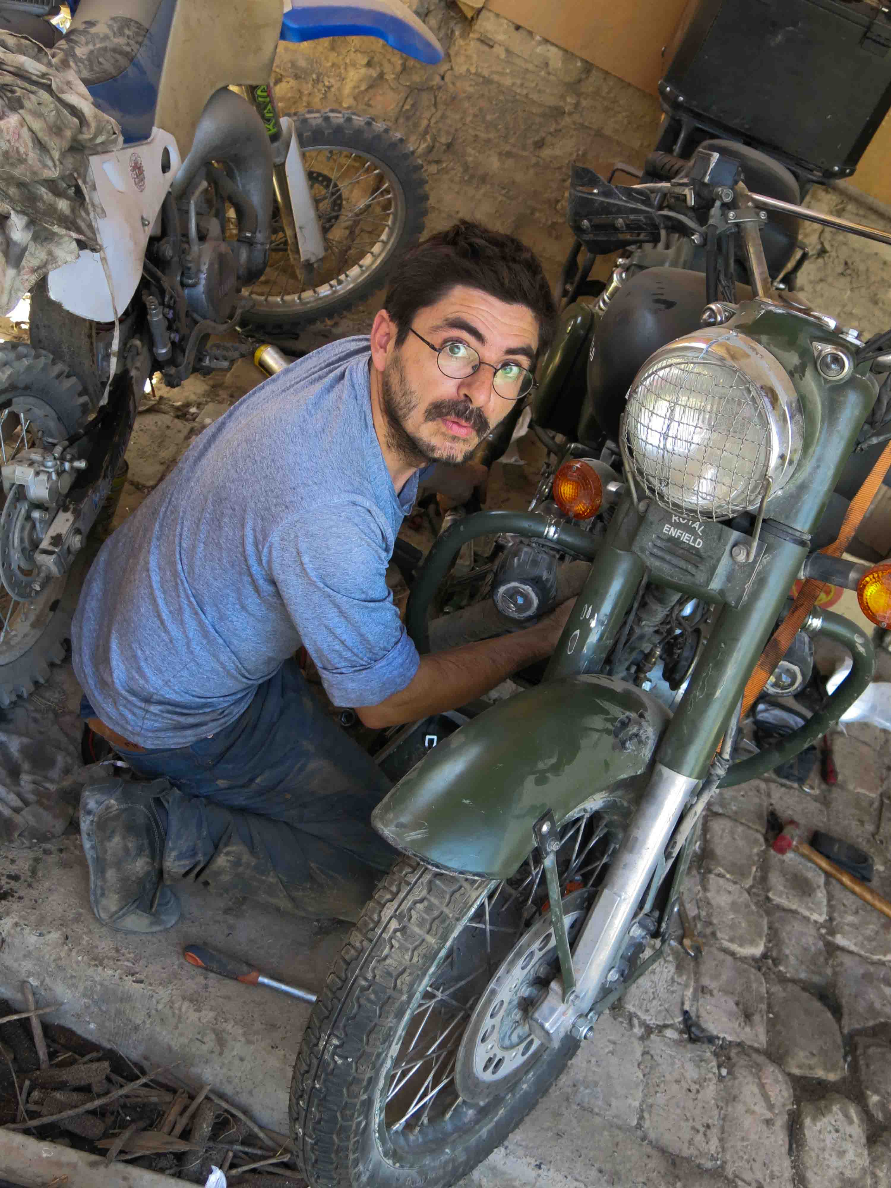 Walter rebuilding the bike